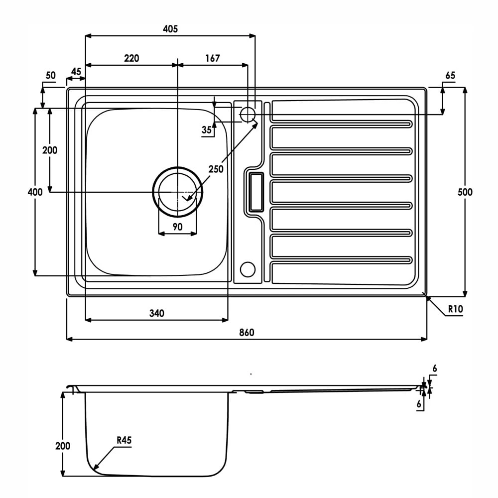 | Main Bowl Size (Length x Width x Depth) | 340mm x 400mm x 200mm |