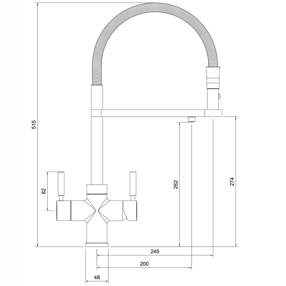 - Stylish 3 way mixer tap delivering domestic hot, cold and 98°