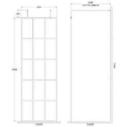 Hudson Reed Black Frame Wetroom Shower Screen With Support Arm & Feet 700x1950x8mm – BFAF070