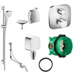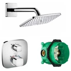 Hansgrohe Square Select Black Concealed Valve, Raindance Select Rail Kit&Exafill Thermostatic