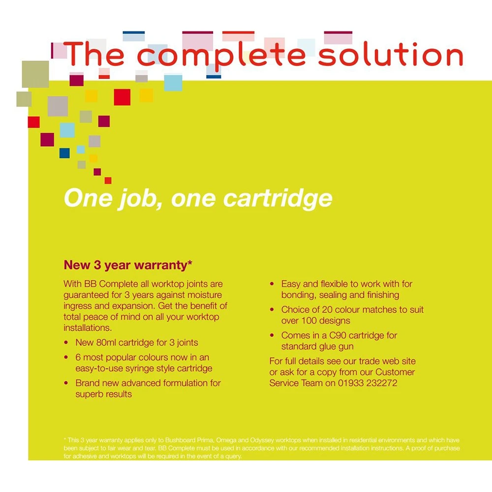 - With BB Complete all worktop joints are guaranteed for 3 years against moisture ingress and expansion. Get the benefit of total peace of mind on all your worktop installations.