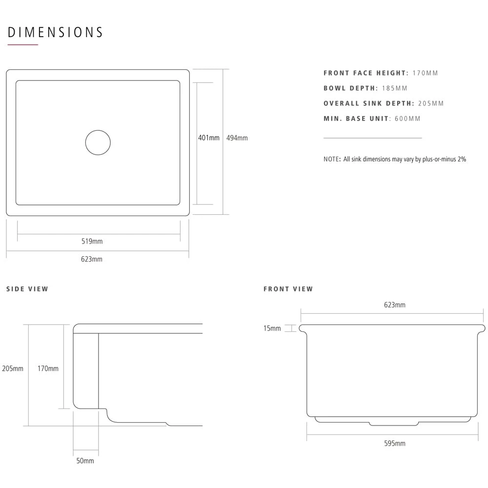 - Designed to allow fitment into a laminate worktop by utilising the inset lip on 3 edges, while providing a true farmhouse look.
