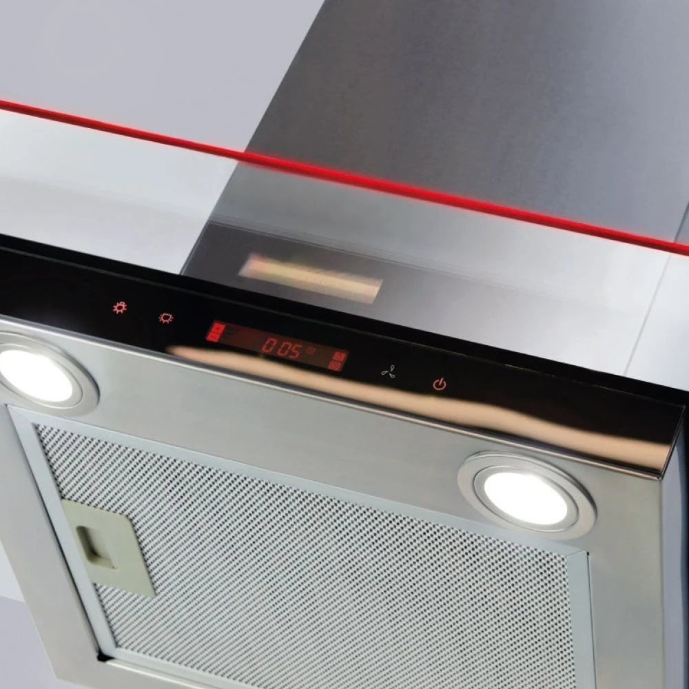 - The EKN60SS is a stylish flat glass extractor with LED edge lighting in three colours, blue, red and green. It has 3 speeds, touch control and built in LED lights to provide good illumination of the cooking area.