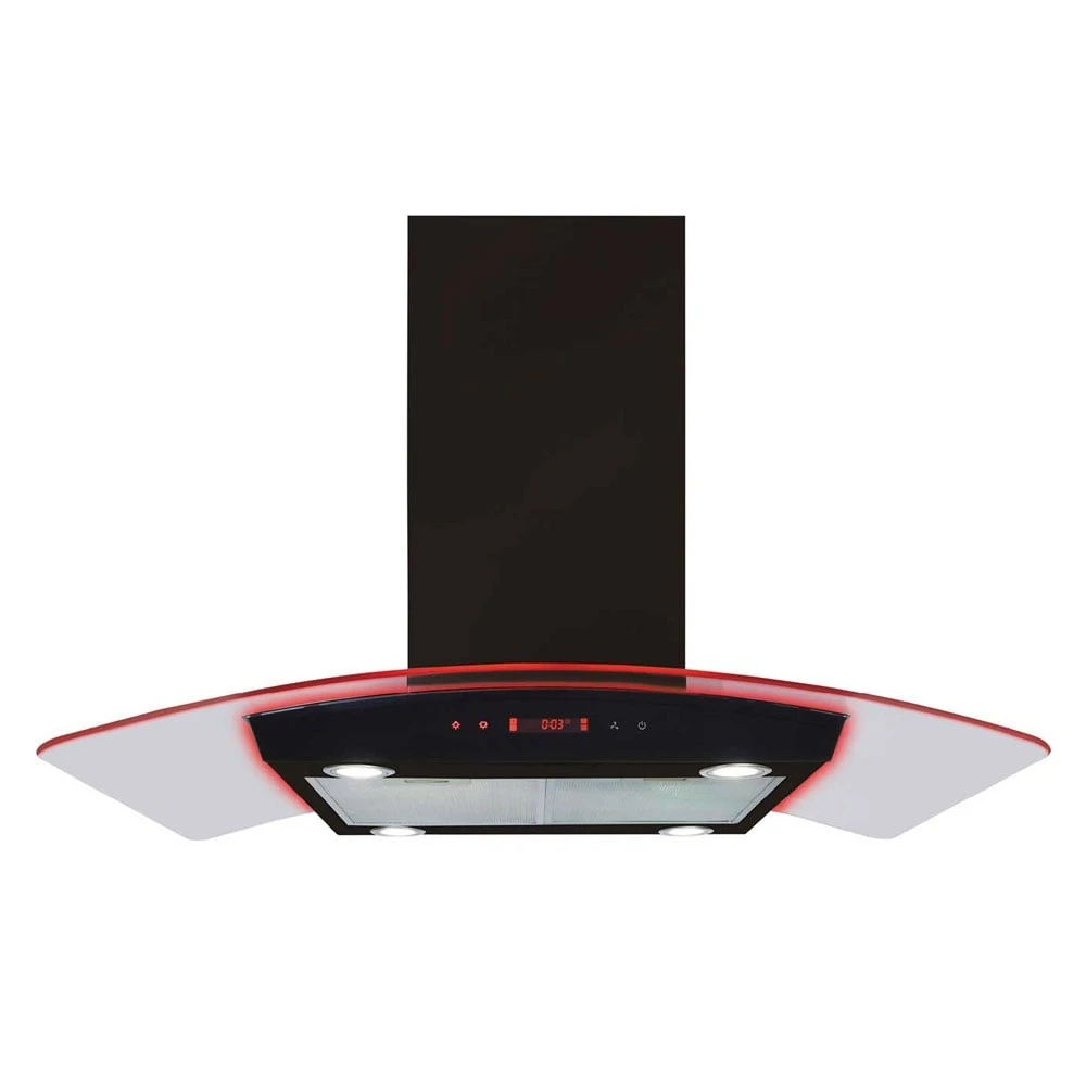 - The EKPK90BL is a stylish curved glass island extractor with LED edge lighting in three colours, blue, red and green. It has 3 speeds, touch control and built in LED lights to provide good illumination of the cooking area.