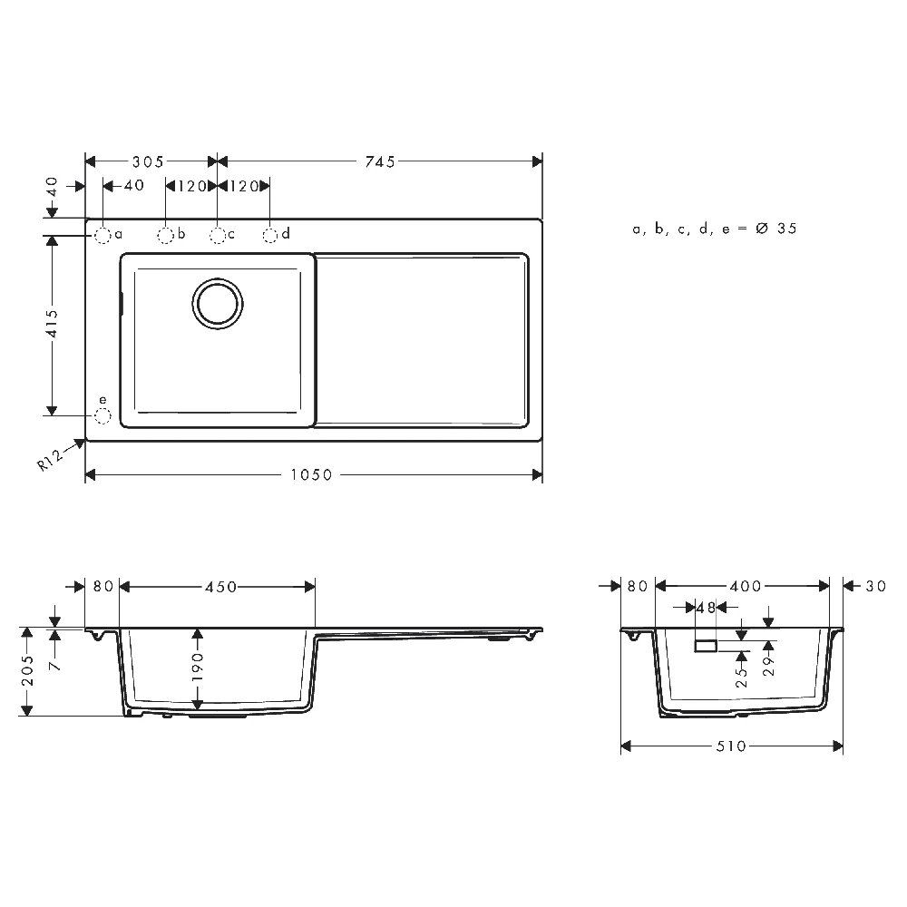 - Cut-out dimensions: 1030 x 490 mm