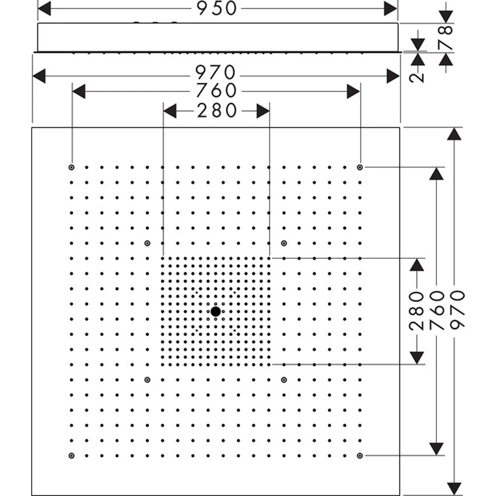 - Shower Head Size: 970 x 970 mm