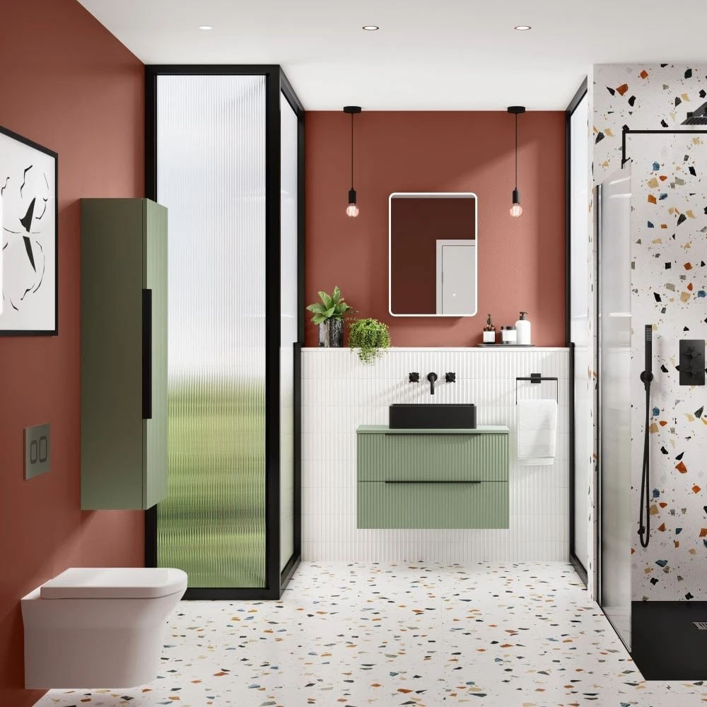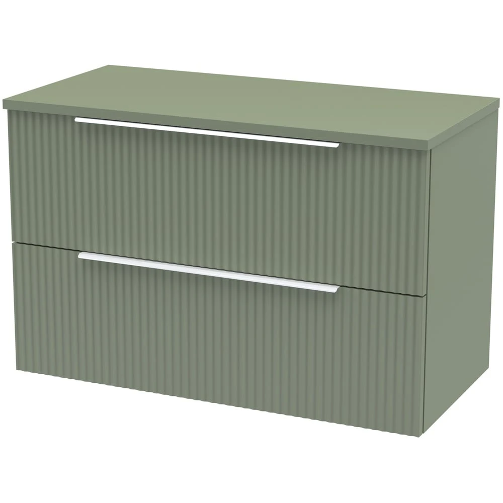Fluted Satin Green 800mm Wall Hung 2-Drawer Vanity Unit & Worktop