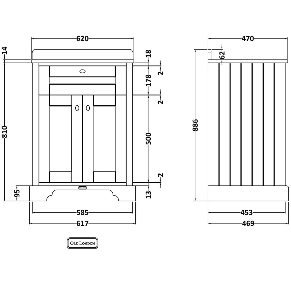 Hudson Reed Old London Storm Grey 600mm Black Marble & 1TH Basin Vanity LOF221