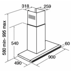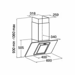 CDA Integrated Hood, 60omm Wide, 3 Speed – Metallic Silver/grey ** Metal Filters Inc ** EIN60FSI