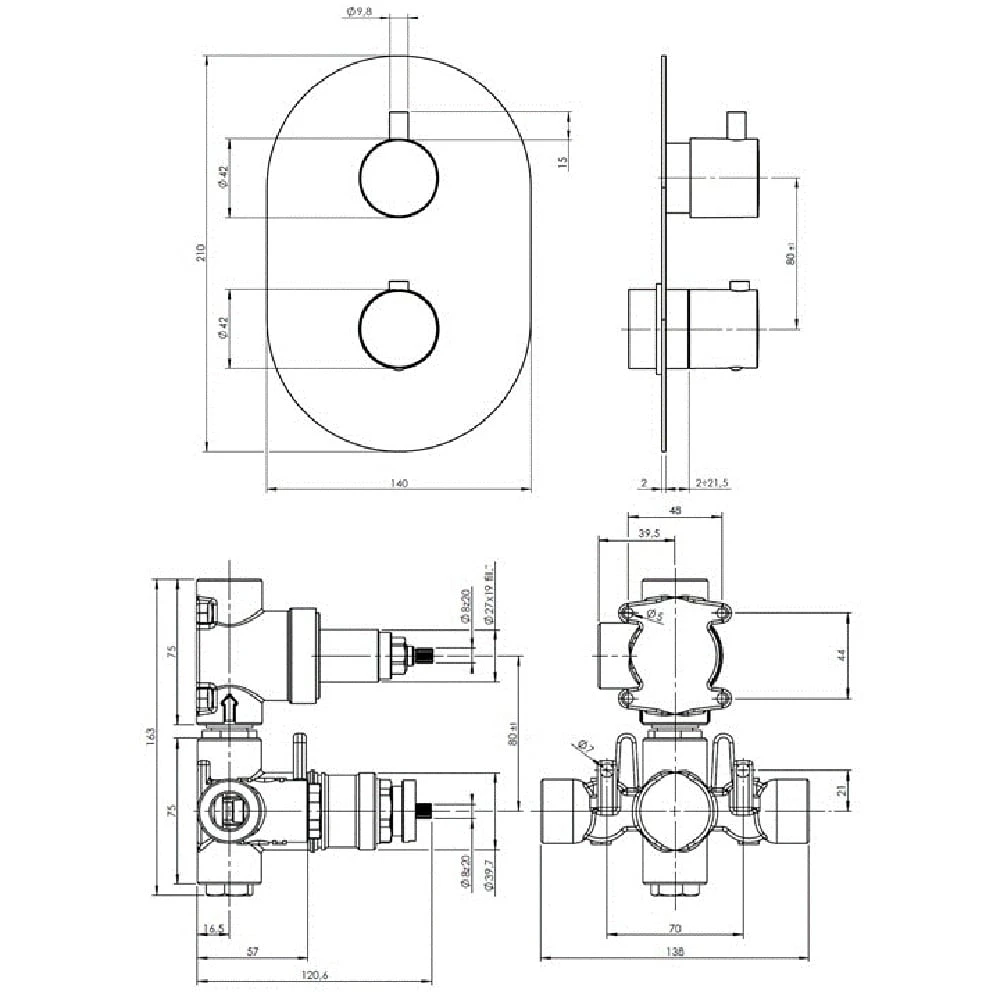 Methven Kaha Chrome Thermostatic 2 Direction Concealed Shower Valve KAHA 2D
