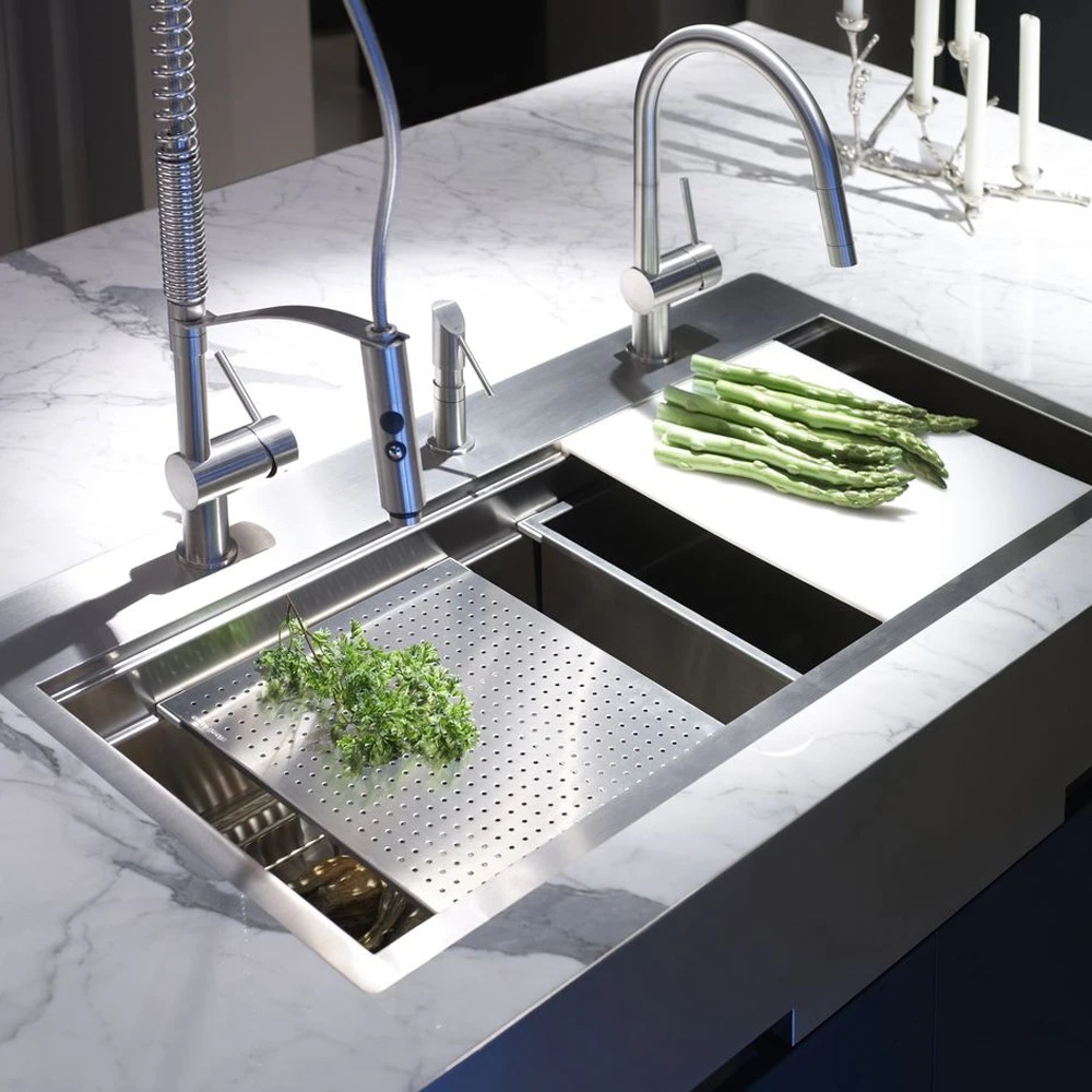 - There are no visible set screws, a feature that allows to install it with the handle in the front, on the right or on the left and that makes it the ideal choice for an island.