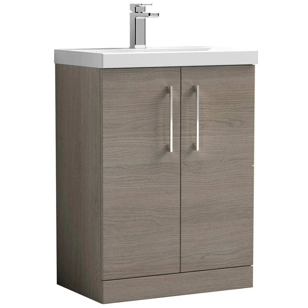 Nuie Arno Solace Oak 600mm Floor Stading 2-Door Vanity Unit & Basin 1