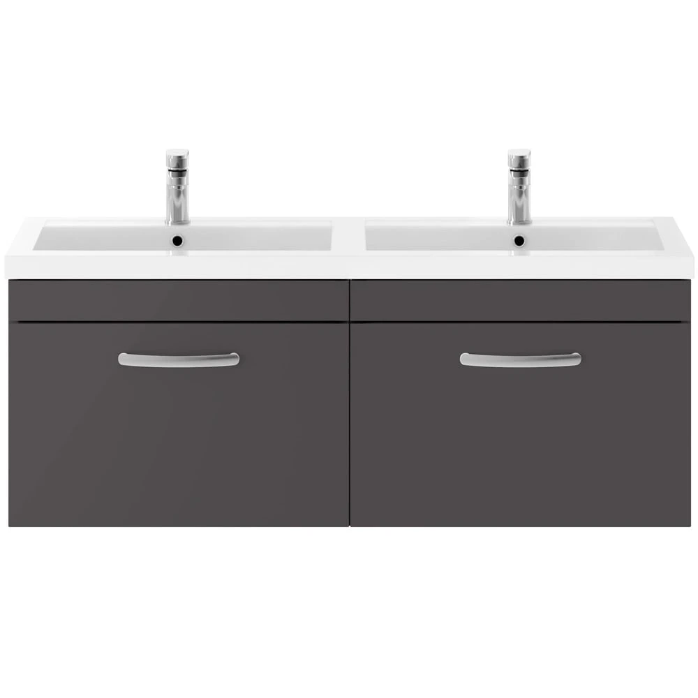 Gloss Grey 1200mm Wall Hung 2-Drawer Vanity & Double Basin