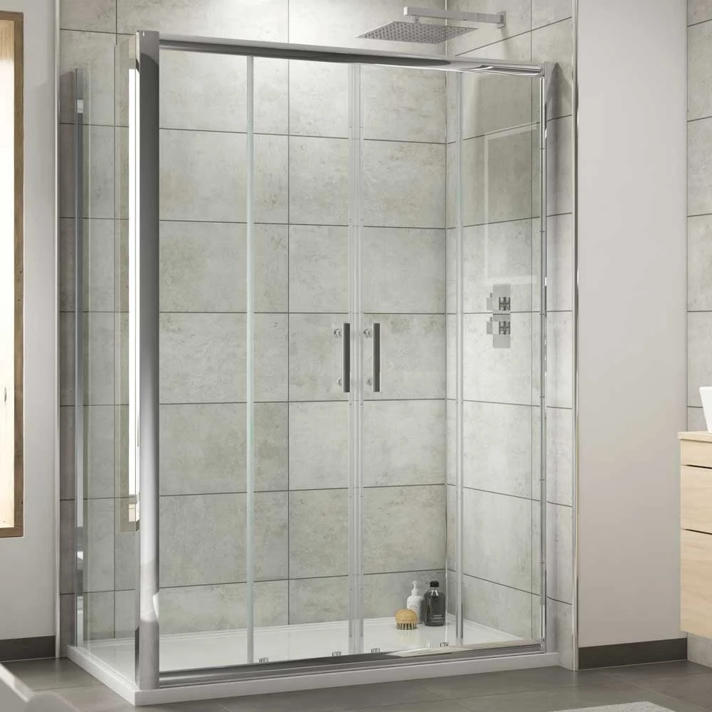 - This Premier Pacific double sliding door shower enclosure 1700 x 900 – with 6mm thickness glass includes both the double sliding door and the side panel which forms a complete shower enclosure.