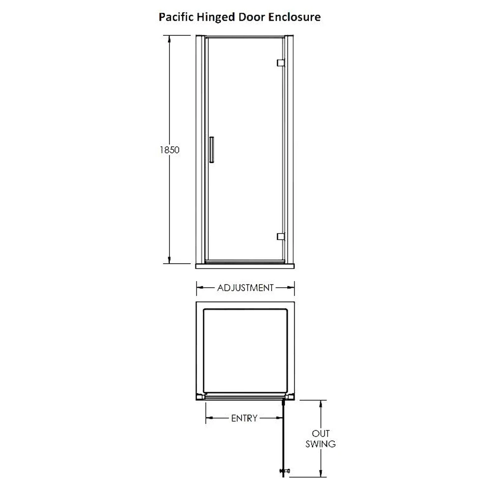 - This Premier Pacific hinged door shower enclosure 800 x 700 – with 6mm thickness glass includes both the hinged door and the side panel which forms a complete shower enclosure.
