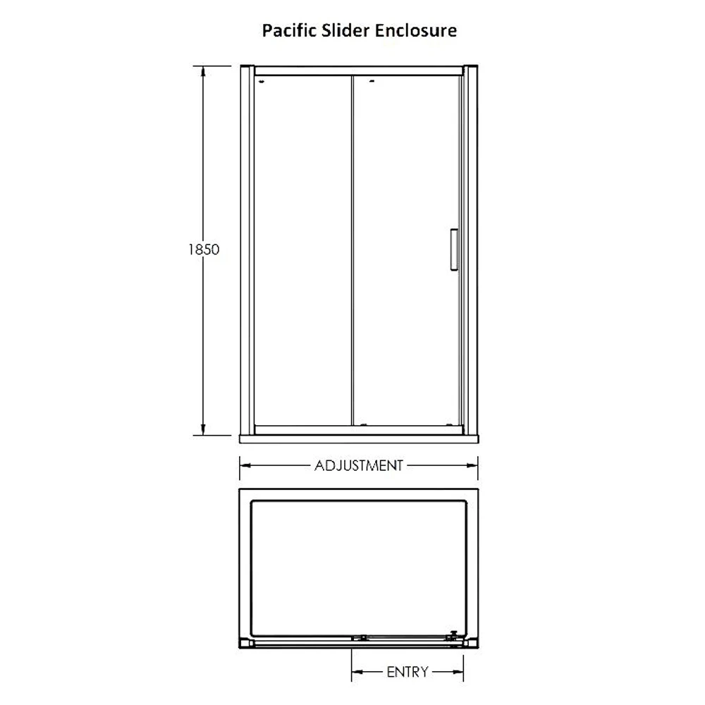 - This Premier Pacific sliding door shower enclosure 1100 x 700 – with 6mm thickness glass includes both the sliding door and the side panel which forms a complete shower enclosure.