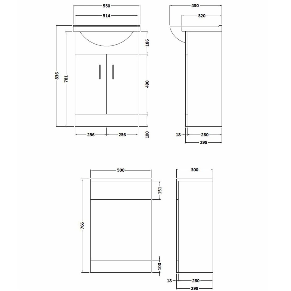 PRC102 550mm Basin Cabinet Information