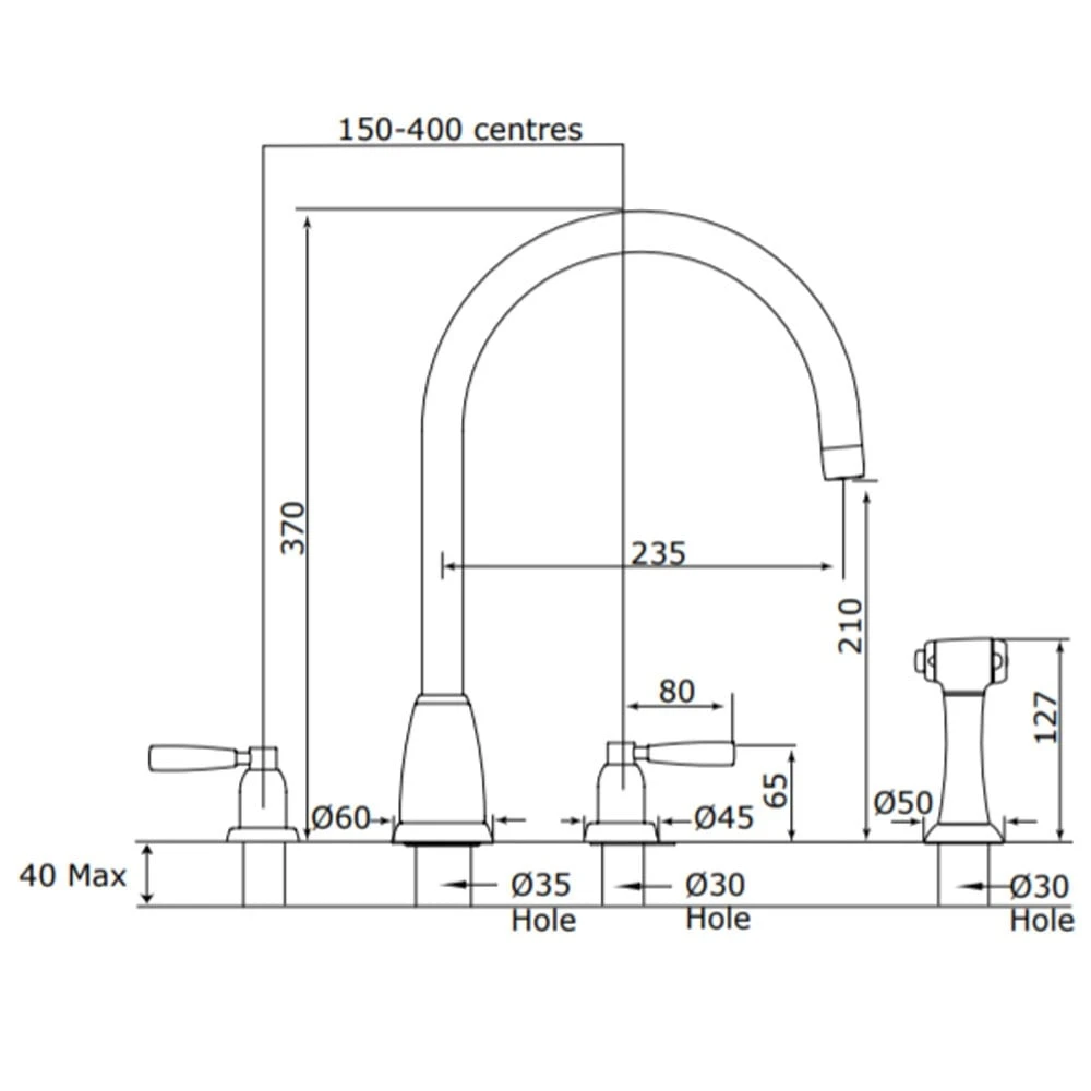 | Tap Hole Centres | 150-400mm |