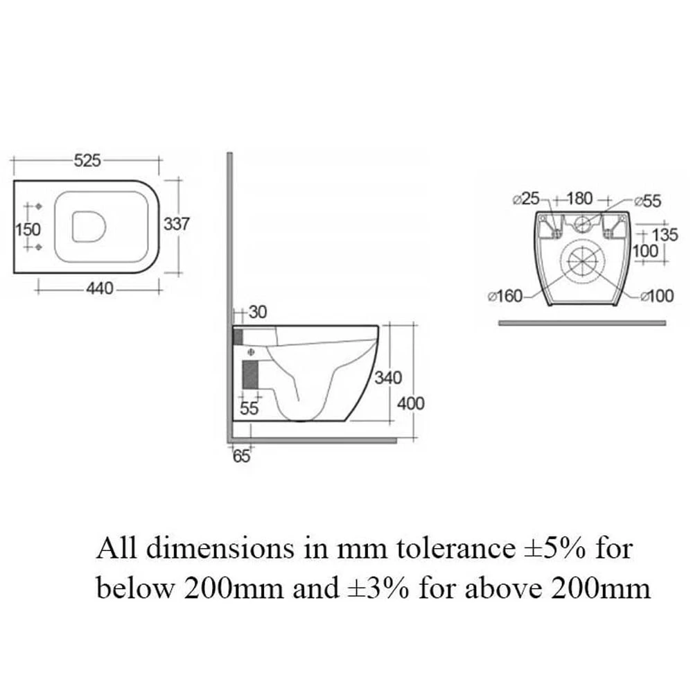 - Toilet Seat Hole Centres: 155mm