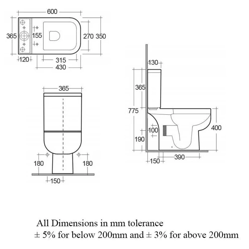 | All dimensions are in mm, with a tolerance (variance) of ±2% on all measurements | |