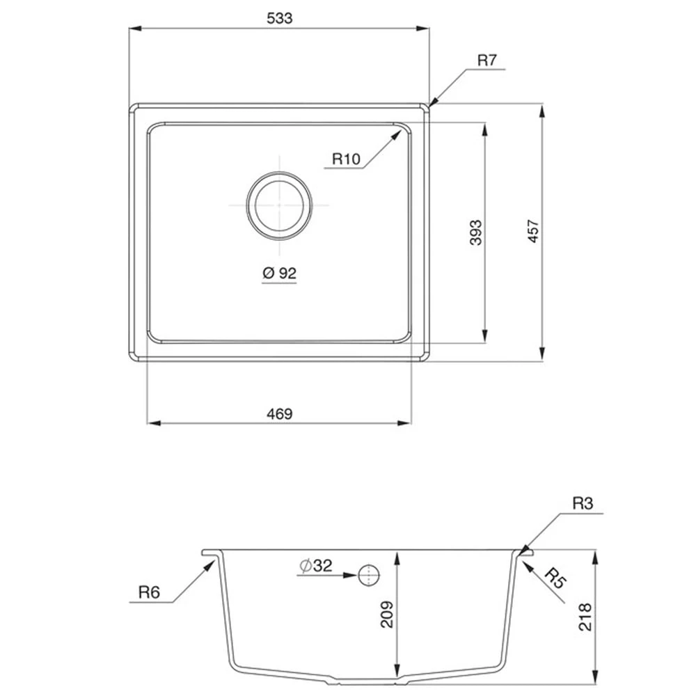 | Main Bowl Size (Length x Width x Depth) | 469mm x 393mm x 209mm |