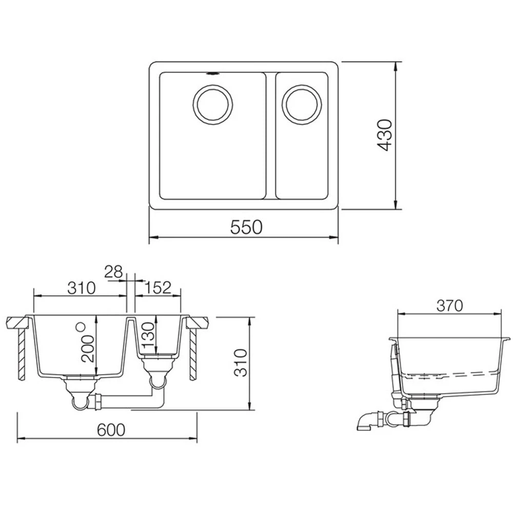 | Main Bowl Size (Length x Width x Depth) | 310mm x 370mm x 200mm |