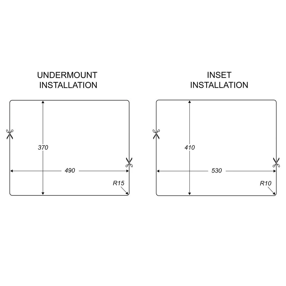 An undermount sink is installed underneath the worktop and to achieve a perfect finish – whether you choose a flush or reveal cut – the sink must be used as a template to cut the worktop. Undermount sinks are generally suitable for installation with the following types of worktops: natural wood, granite, quartz, ceramic, glass, corian, solid laminate and stainless steel. It is generally not suitable for installation with standard laminate worktops. For full compatibility information, contact your worktop supplier.