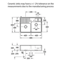 | Second Bowl Size (Length x Width x Depth) | 152mm x 370mm x 130mm |