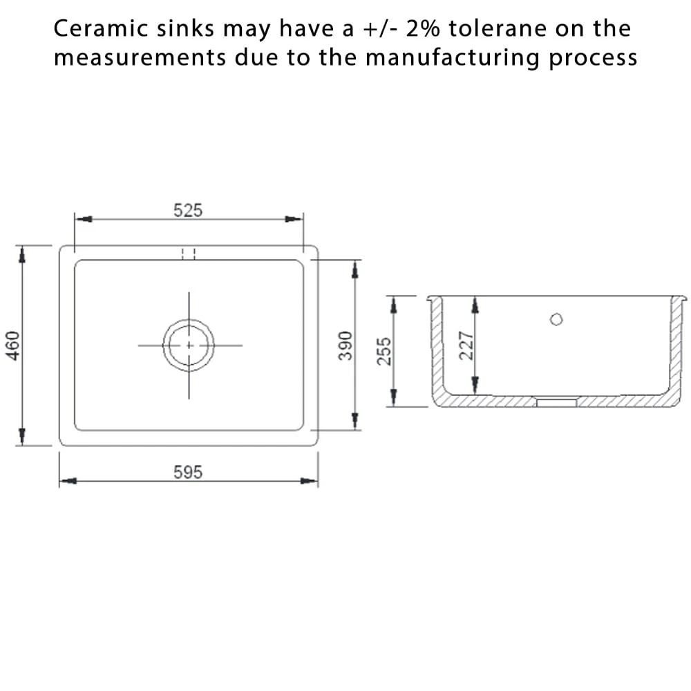 | Main Bowl Size (Length x Width x Depth) | 525mm x 390mm x 227mm |