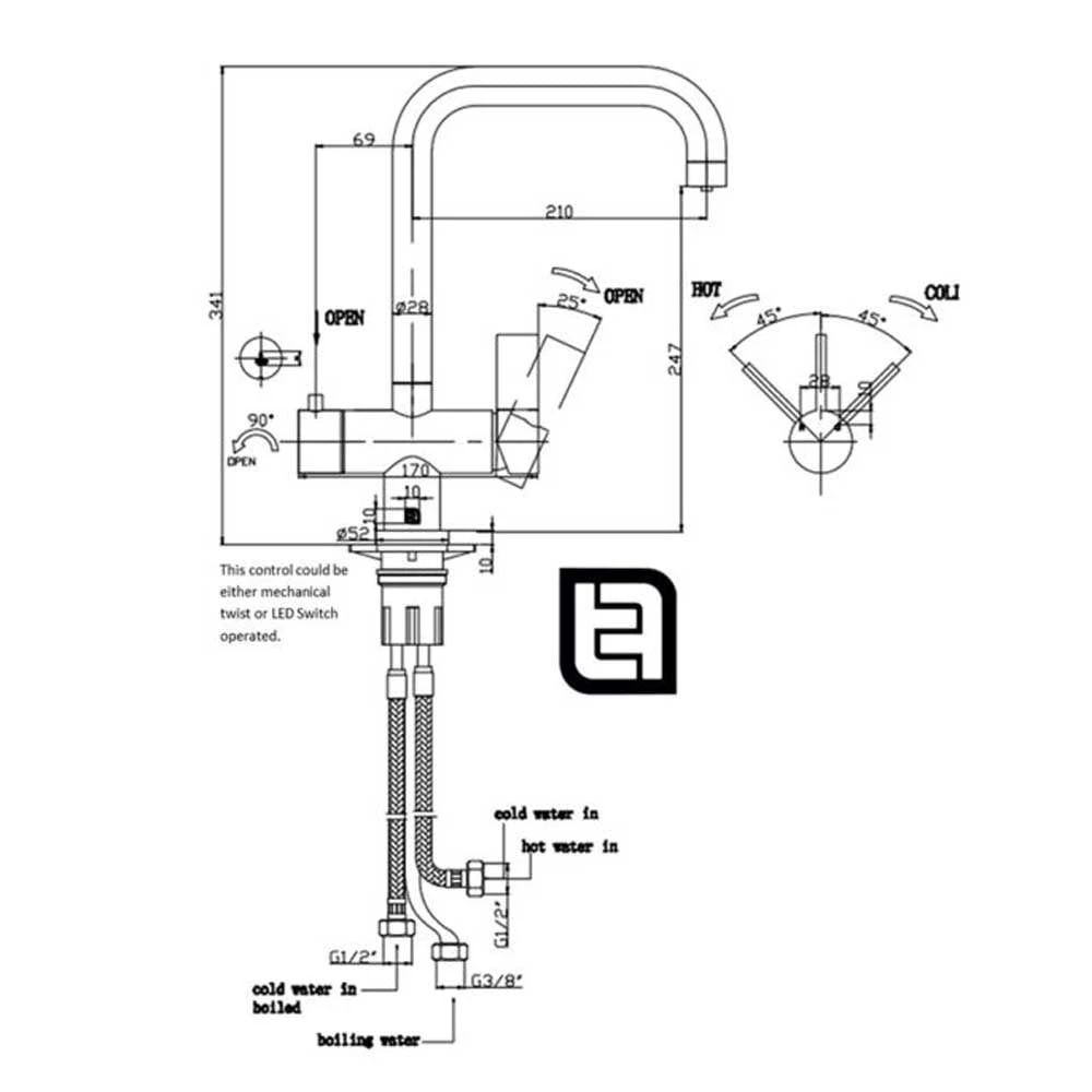 - The Tap Factory’s instant hot water taps come in two designs, LED digital touch and mechanical twist operation. This is our twist-function Milo instant hot water tap finished in brushed steel.