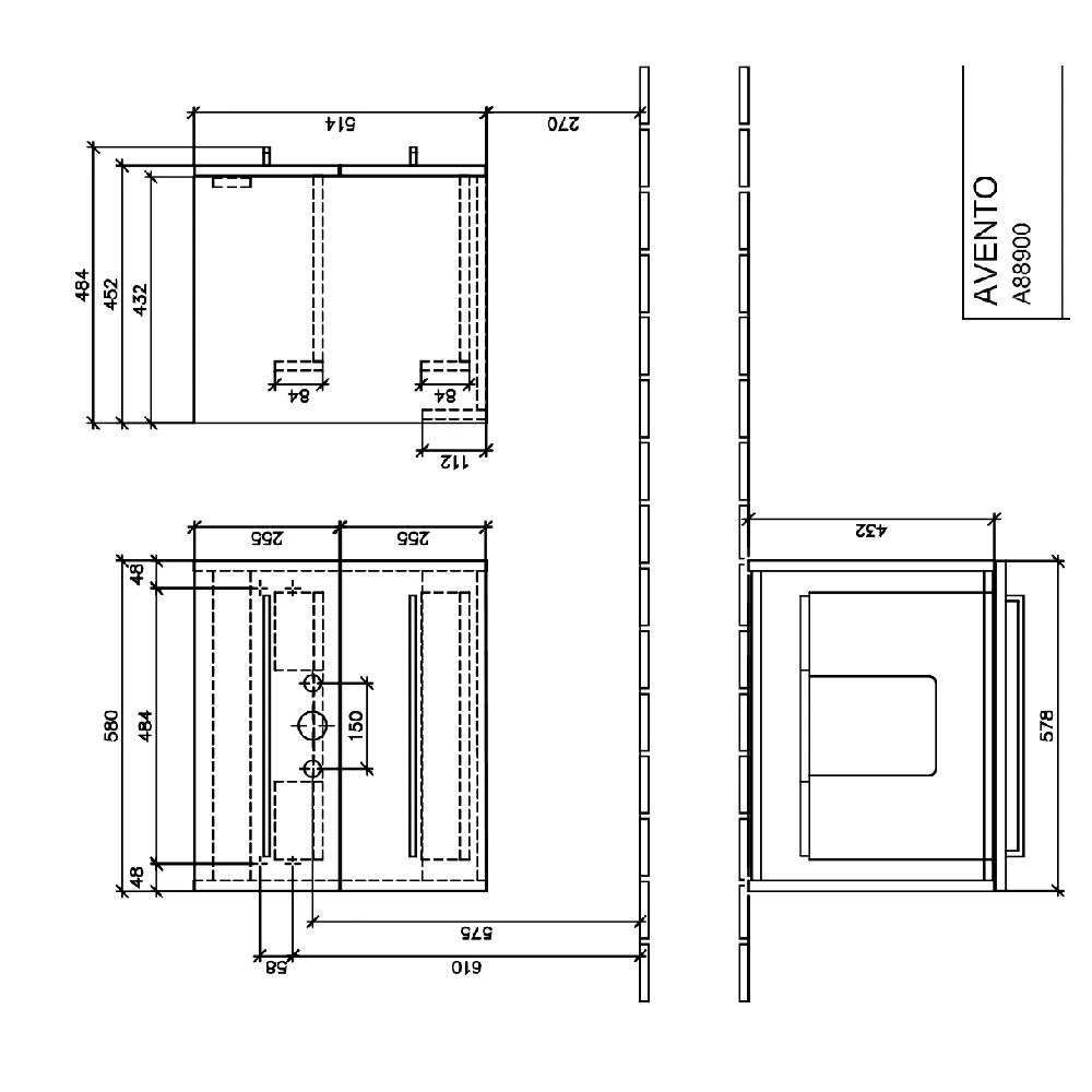 - Depth (Top to Bottom): 484mm